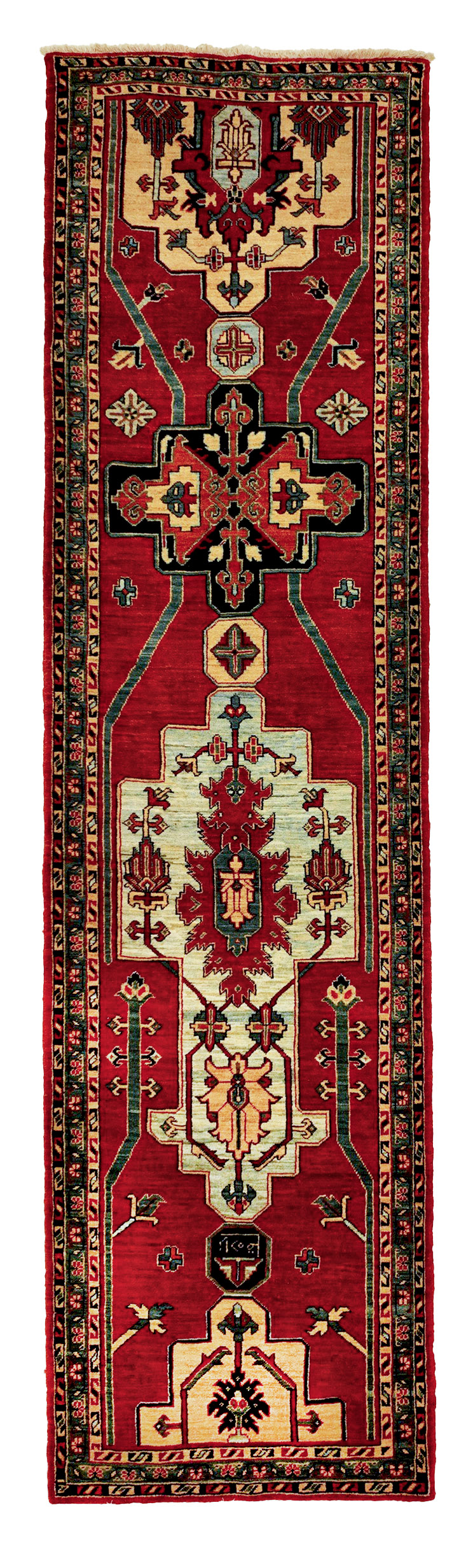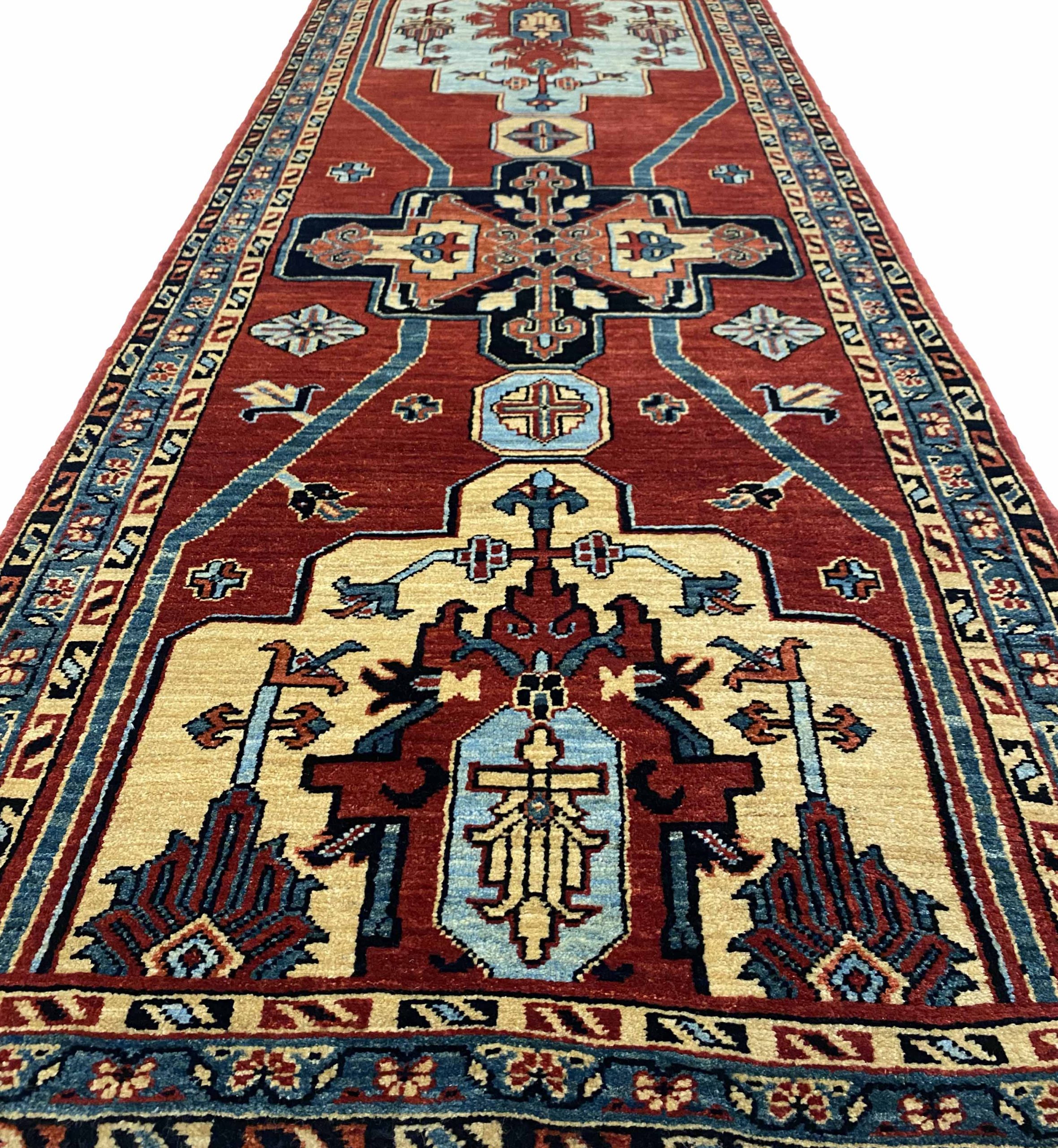 Stock Number: 2791-2Category: Size: 343 x 90 cmOrigin: Hand woven in the Azerbaijan Region in North West IranComposition: Pure WoolAvailable: Yes